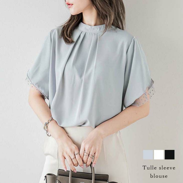 チュールスリーブブラウス ブラウス 半袖 パール チュールスリーブブラウス ブラウス 半袖 パール チュールスリーブ トップス レディース ドットレース おすすめ おしゃれ 上品 オフィス ブラック 2025春夏新作 【lstp302-51f】【即納:1-5営業日】【送料無料】ユ込2