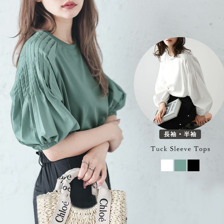 Tシャツ タックスリーブ 長袖 半袖 ぽわん袖 ボリューム 【春夏半額SALE対象】 Tシャツ タックスリーブ 長袖 半袖 ぽわん袖 ボリューム 半袖 トップス レディース 異素材 上品 おすすめ 大人 可愛い カジュアル おしゃれ メール便 2025春夏新作 【lstp302-64f】【即納:1-5営業日】【送料無料】ユ込3
