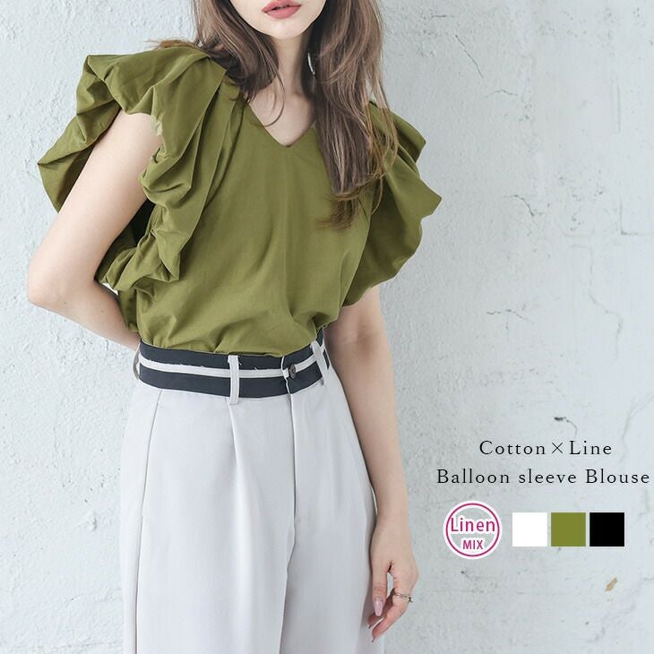 リネン混ブラウス バルーン袖 Vネックレディース リネン混ブラウス バルーン袖 Vネック トップス レディース キレイめ 可愛い 華やか おすすめ おしゃれ フリーサイズ メール便 2025春夏新作 【lstp302-75f】【即納:1-5営業日】【送料無料】ユ込3