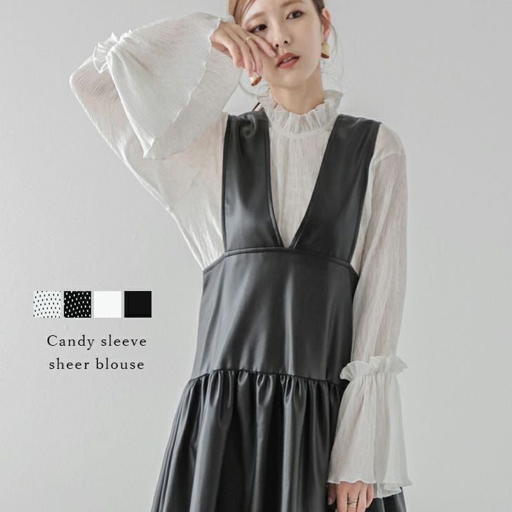 シアーブラウス キャンディー袖 ドット柄 上品 長袖 シアーブラウス キャンディースリーブ ドット柄 上品 長袖 トップス レディース おすすめ おしゃれ フリーサイズ メール便 2025春夏新作 【lstp302-84f】【即納:1-5営業日】【送料無料】ユ込3