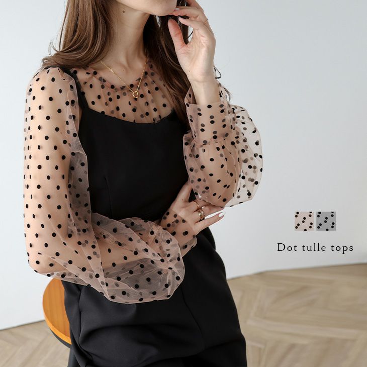 シアートップス チュール ドット ぽわん袖 透け感 シアートップス チュール ドット ぽわん袖 透け感 フェミニン レイヤード 大人 キレイめ 可愛い レディース おすすめ おしゃれ フリーサイズ メール便 2025春夏新作【lstp304-499】【即納:1-5営業日】【送料無料】ユ込2