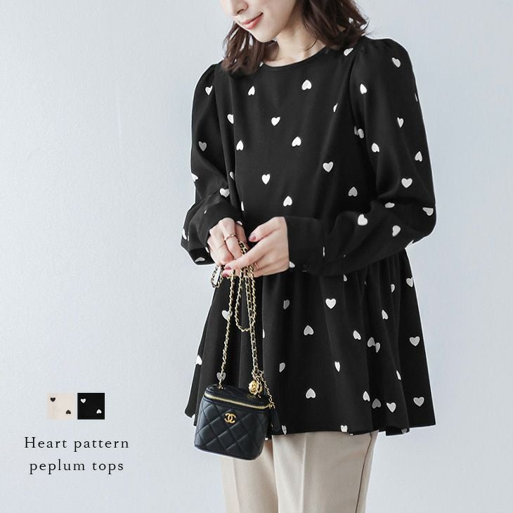 ハート柄ペプラム トップス パフショルダー 可愛い 【春夏半額SALE対象】 ハート柄ペプラム トップス パフショルダー 大人ガーリー 可愛い 体型カバー 長袖 トップス レディース おすすめ おしゃれ フリーサイズ メール便 2025春夏新作【lstp304-647】【即納:1-5営業日】【送料無料】ユ込3