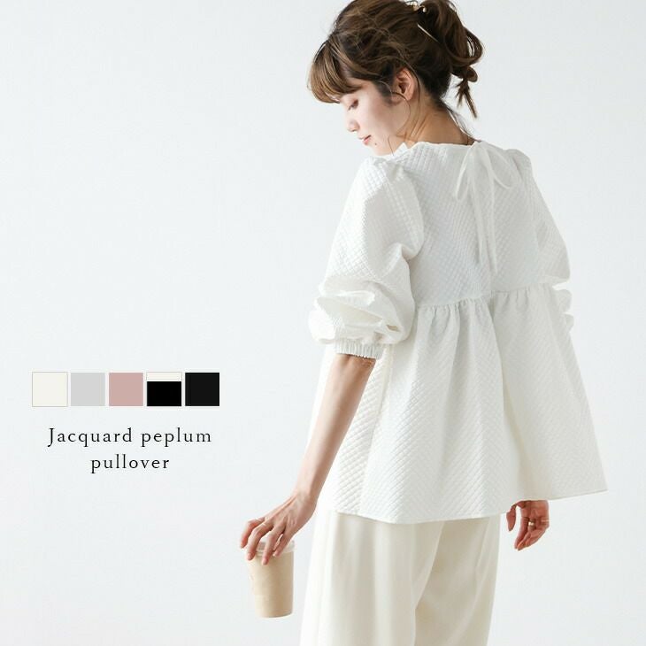 ペプラム ジャガード バックリボン トップス ペプラム ジャガード バックリボン トップス 細見え スタイルアップ 長袖 大人可愛い デート 体型カバー レディース おすすめ おしゃれ フリーサイズ メール便 2025春夏新作 【lstp306-334】【即納:1-5営業日】【送料無料】メ込2