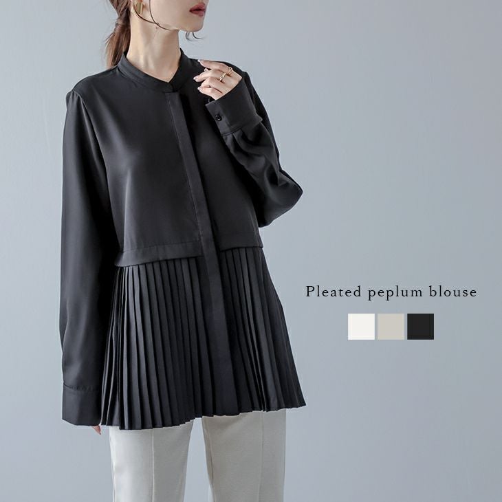 ブラウス プリーツペプラム 長袖 バンドカラー トップス ブラウス プリーツペプラム 長袖 バンドカラー トップス レディース おすすめ おしゃれ ブラック フリーサイズ メール便 2025春夏新作 【lstp306-355】【即納:1-5営業日】【送料無料】メ込2