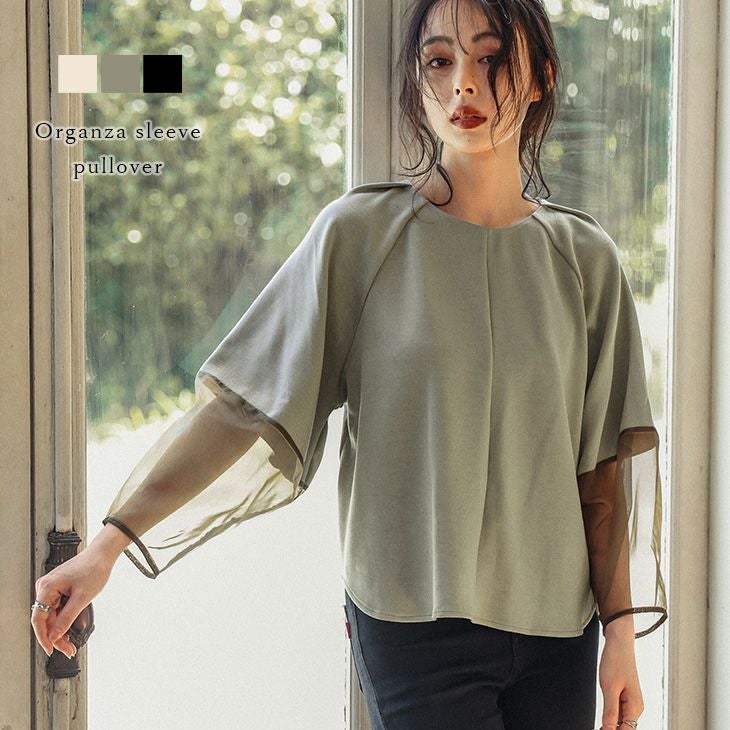 トップス 異素材 ドッキング ぽわん袖 チュール トップス 異素材 ドッキング ぽわん袖 チュール オーガンジー バルーンスリーブ レディース おすすめ おしゃれ フリーサイズ 2025春夏新作 【lstpaw24-644】【即納:1-5営業日】【送料無料】メ込2