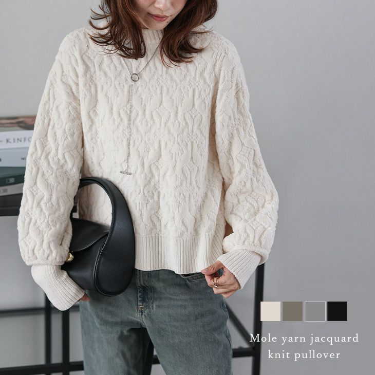 モールヤーン ジャガード ニット プルオーバー クルーネック 【春夏半額SALE対象】 モールヤーン ジャガード ニット プルオーバー クルーネック クロップド丈 リブ袖 ドロップショルダー トップス レディース 2025春夏新作 【lstpaw24-689】【即納:1-5営業日】【送料無料】60込
