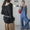 前後2way ヘンリーネック リブニット ラウンドネック 【秋半額SALE対象】 前後2way ヘンリーネック リブニット ラウンドネック ラウンドヘム ラグランスリーブ 長袖 シンプル トップス レディース おすすめ おしゃれ 2025春夏新作 【lstpaw25-1461】【即納:1-5営業日】【送料無料】メ込3