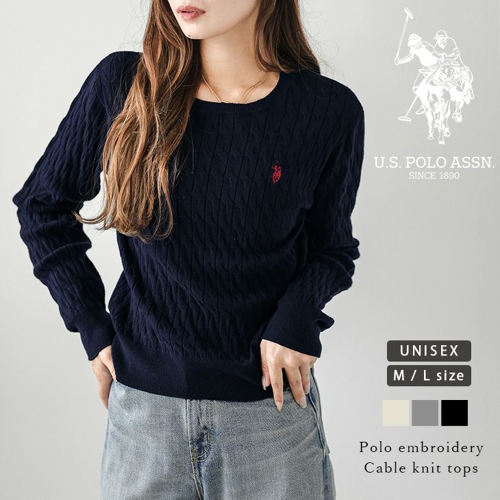 U.S. POLO ASSN. 別注 ロゴ刺繍 U.S. POLO ASSN. 別注 ロゴ刺繍 ケーブルニット ユニセックス Lサイズ ワンポイント トップス ニット レディース メール便 2025春夏新作 【lstpaw25-pl002】【即納:1-5営業日】【送料無料】メ込2
