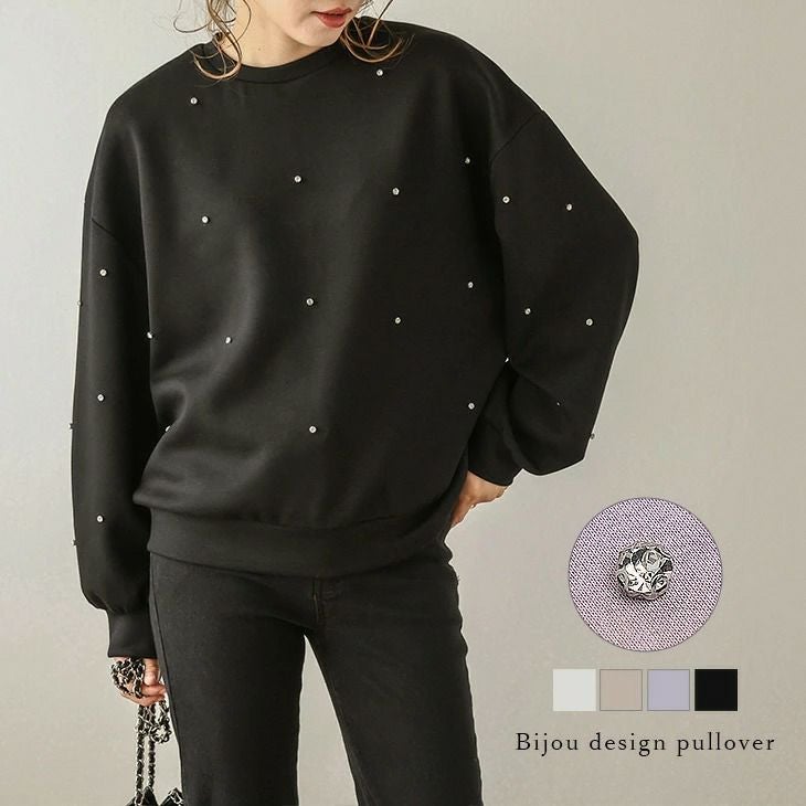 ビジュー トップス ダンボールニット ラインストーン ビジュー トップス ダンボールニット ラインストーン キレイめ 大人可愛い レディース おすすめ おしゃれ フリーサイズ メール便 2025春夏新作 【lstpss24-202】【即納:1-5営業日】【送料無料】メ込2