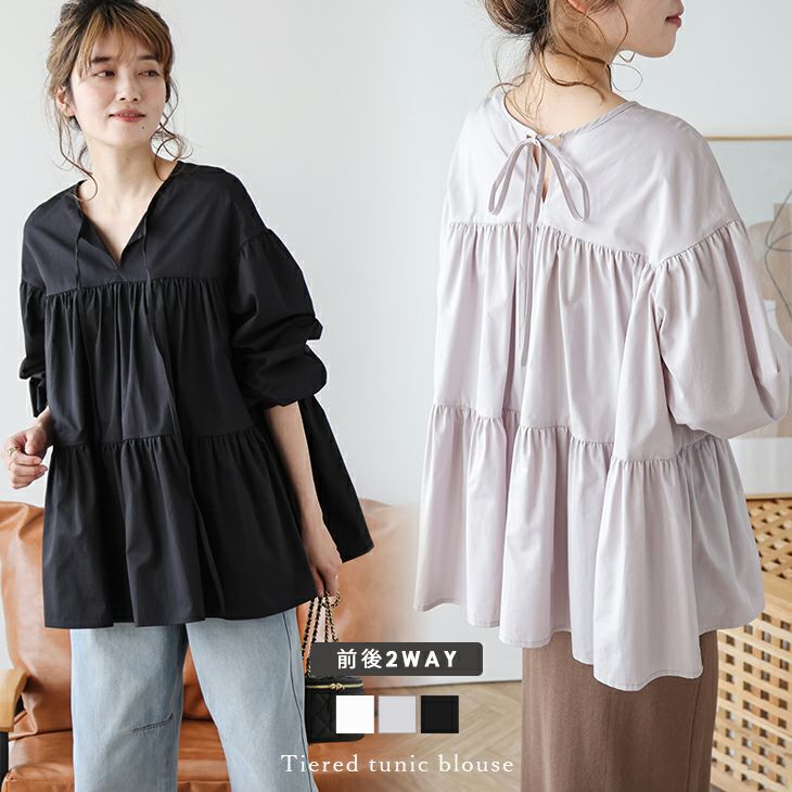 ティアード 2way チュニック ブラウス リボン ティアード 2way チュニック ブラウス 紫外線対策 UV対策 リボン キーネック シャツ 体形カバー キレイめ 大人可愛い レディース おすすめ おしゃれ フリーサイズ メール便 2025春夏新作 【lstpss24-204】【即納:1-5営業日】【送料無料】メ込2