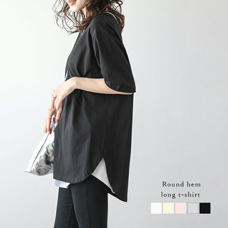 トップス Tシャツ シンプル ラウンドヘム トップス Tシャツ シンプル ラウンドヘム ラウンドネック オーバーサイズ 5分袖 半袖 レディース おすすめ おしゃれ フリーサイズ メール便 2025春夏新作【lstpss24-245】【即納:1-5営業日】【送料無料】ユ込2