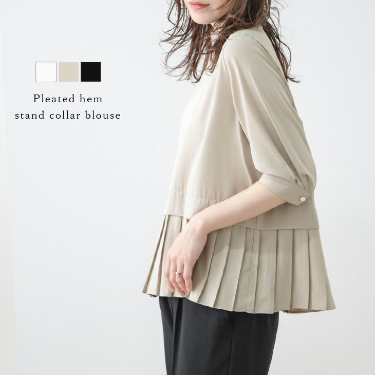 プリーツヘム スタンドカラー ブラウス 5分袖 パール プリーツヘム スタンドカラー ブラウス 5分袖 パールボタン 速乾 キレイめ 大人可愛い レディース おすすめ おしゃれ フリーサイズ メール便 2025春夏新作【lstpss24-261】【即納:1-5営業日】【送料無料】ユ込3