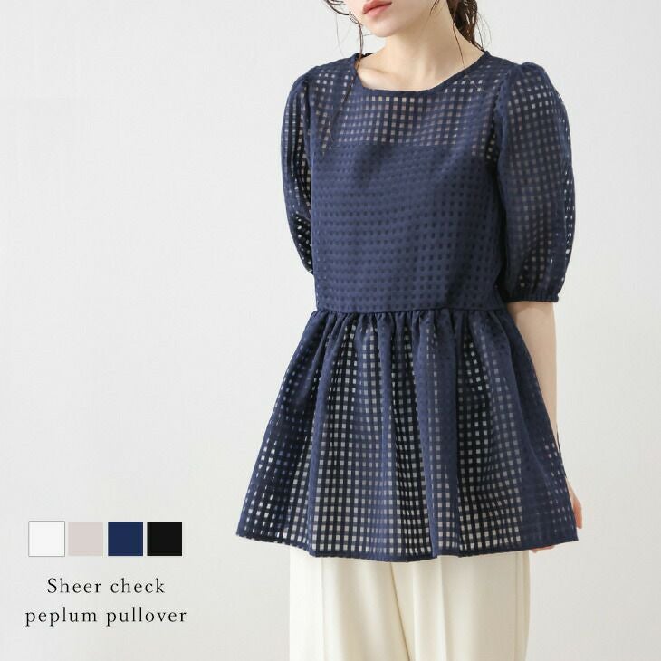 シアー ギンガムチェック ペプラム パフスリーブ シアー ギンガムチェック ペプラム パフスリーブ オーガンジー パール 5分袖 トップス レディース おすすめ おしゃれ フリーサイズ メール便 2025春夏新作【lstpss24-265】【即納:1-5営業日】【送料無料】メ込2