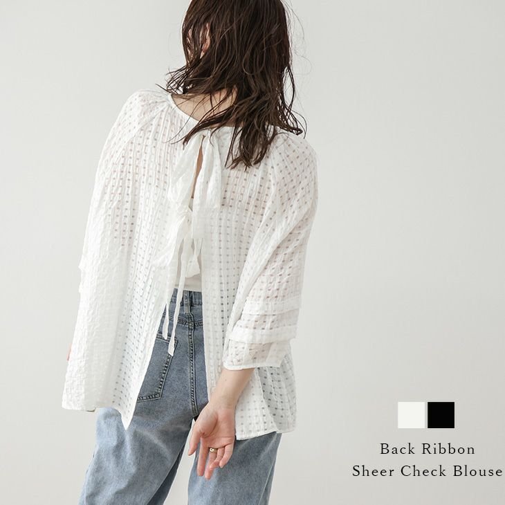バックリボン シアー 透け感 ブラウス チェック 【春夏半額SALE対象】 バックリボン シアーチェック 透け感 ブラウス ギンガムチェック チュニック 大人ガーリー レディース おすすめ おしゃれ フリーサイズ メール便 2025春夏新作 【lstpss24-267】【即納:1-5営業日】【送料無料】ユ込3