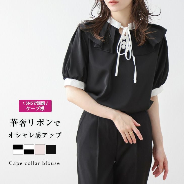 ケープカラー ブラウス 5分袖 リボンタイ バイカラー ケープカラー ブラウス 5分袖 リボンタイ バイカラー パフスリーブ キレイめ 上品 レディース おすすめ おしゃれ フリーサイズ メール便 2025春夏新作 【lstpss24-273】【即納:1-5営業日】【送料無料】ユ込2