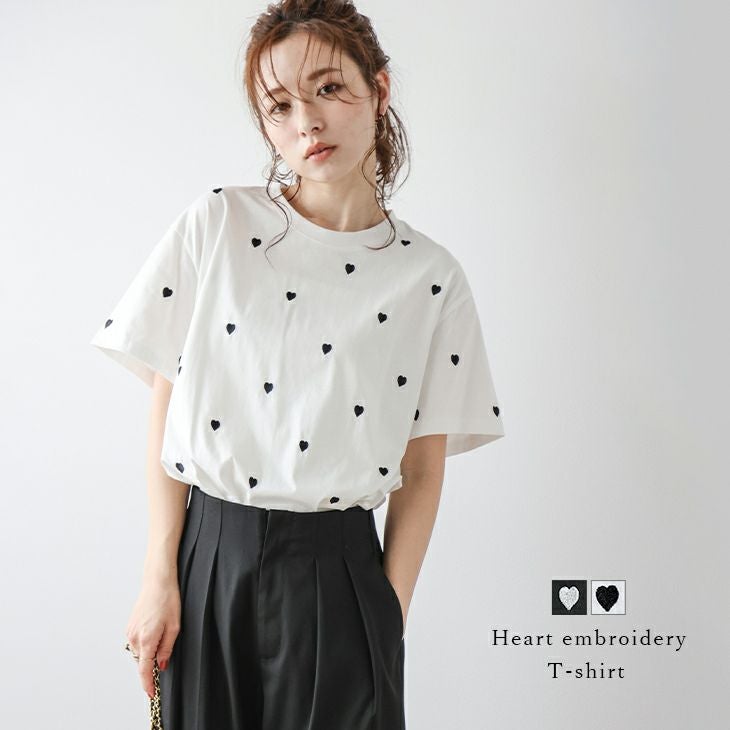 ハート トップス 刺繍 Tシャツ半袖 ラウンドネック ハート トップス 刺繍 Tシャツ半袖 ラウンドネック 大人かわいい ガーリー レディース おすすめ おしゃれ フリーサイズ メール便 2025春夏新作 【lstpss24-346】【即納:1-5営業日】【送料無料】ユ込3
