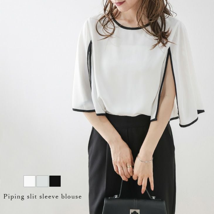 配色パイピング スリットスリーブ フレア袖 ドレープ ブラウス 配色パイピング スリットスリーブ フレア袖 ドレープ ブラウス トップス レディース おすすめ おしゃれ 2025春夏新作 【lstpss24-428】【即納:1-5営業日】【送料無料】ユ込2
