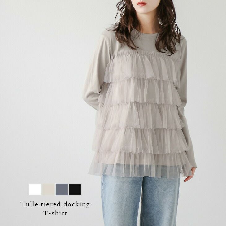 トップス チュール フリル クルーネック ドッキング 長袖 半袖 異素材 大人かわいい トレンド トップス チュール フリル クルーネック ドッキング 長袖 半袖 異素材 大人かわいい トレンド レディース おすすめ おしゃれ フリーサイズ メール便 2025春夏新作 【lstpss24-536】【即納:1-5営業日】【送料無料】ユ込3