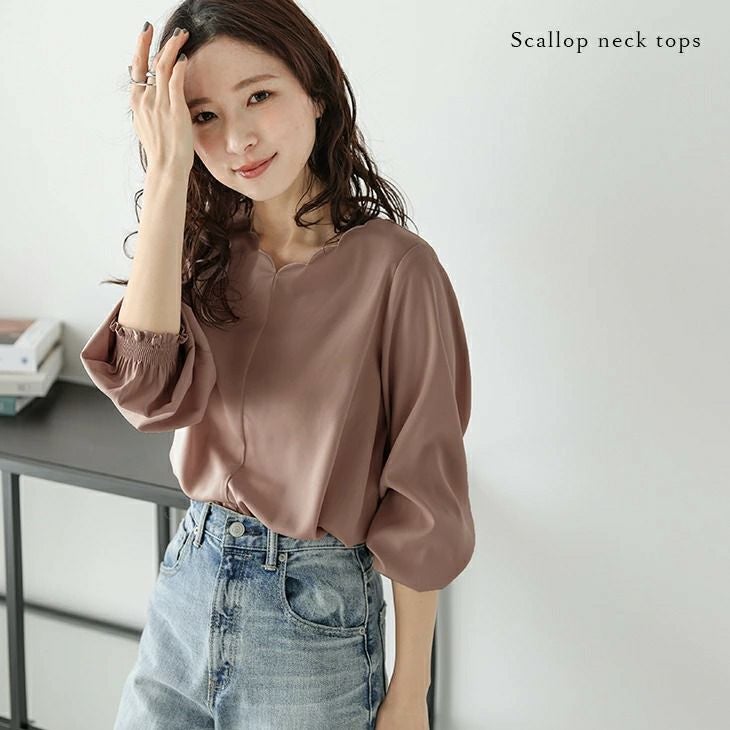 スカラップ ブラウス ぽわん袖 フリル袖 Vネック 【春夏半額SALE対象】 スカラップ ブラウス ぽわん袖 フリル袖 Vネック 長袖 トップス キレイめ 大人かわいい トレンド レディース フリーサイズ メール便 2025春夏新作【lstpss24-582】【即納:1-5営業日】【送料無料】メ込2