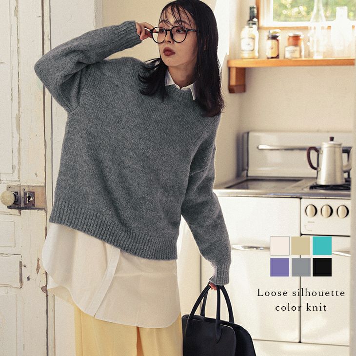 ニット カラーニット ルーズシルエット こなれ感 ゆったり 【秋冬半額SALE対象】 ニット カラーニット ルーズシルエット こなれ感 ゆったり シンプル 無地 ラウンドネック トップス レディース おすすめ おしゃれ フリーサイズ カラバリ豊富 2025春夏新作 【lstpss24-592】【即納:1-5営業日】【送料無料】60込