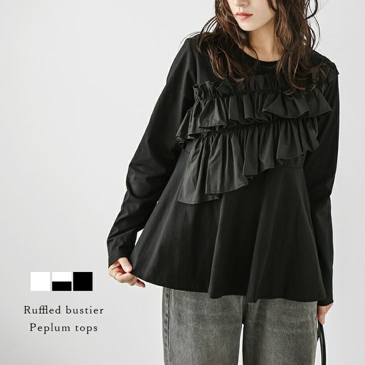 トップス ドッキング フリル 異素材 カットソー トップス ドッキング フリル 異素材 カットソー ロンT ペプラム 細見え 大人かわいい トレンド レディース おすすめ おしゃれ フリーサイズ メール便 2025春夏新作【lstpss24-610】【即納:1-5営業日】【送料無料】メ込2