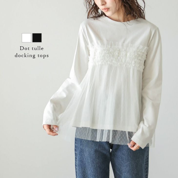 ドット チュール ドッキング 体型カバー フェミニン 【春夏半額SALE対象】 ドット チュール ドッキング 体型カバー フェミニン 上品 大人かわいい トレンド レディース 長袖 シンプル フリーサイズ メール便 2025春夏新作【lstpss24-611】【即納:1-5営業日】【送料無料】ユ込2