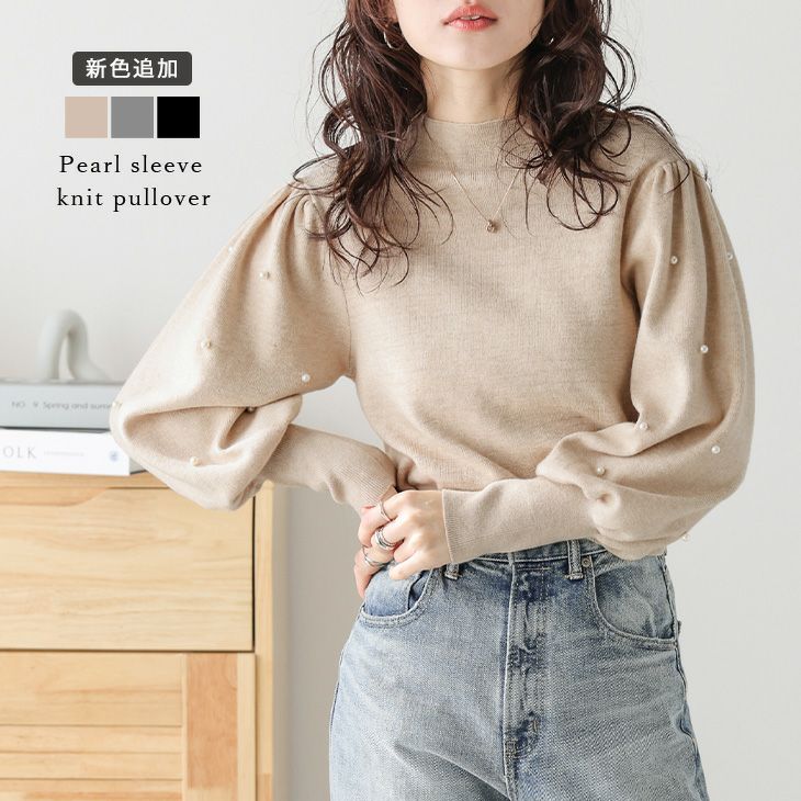ニット パール ボリュームスリーブ ハイネック 【春夏半額SALE対象】 ニット パール ボリュームスリーブ ぽわん袖 ハイネック キレイめ 上品 レディース フリーサイズ メール便 2025春夏新作【lstpss24-940】【即納:1-5営業日】【送料無料】メ込2
