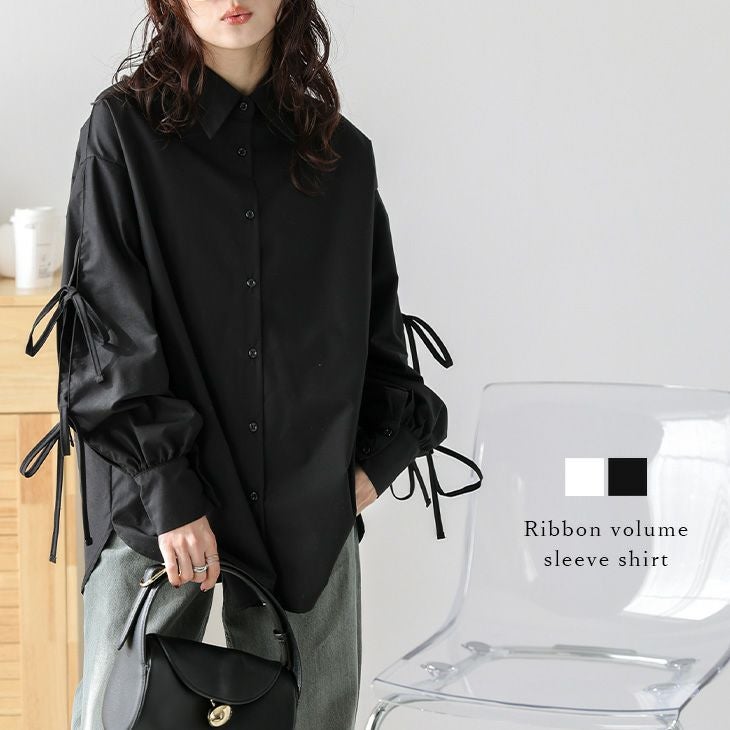 シャツ リボン ボリュームスリーブ 体型カバー シャツ リボン ボリュームスリーブ シンプル 体型カバー 大人可愛い フェミニン レディース おすすめ おしゃれ フリーサイズ メール便 2025春夏新作【lstpss25-1003】【即納:1-5営業日】【送料無料】メ込2