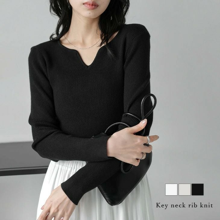 キーネック リブニット 長袖 ストレッチ シンプル 【秋冬半額SALE対象】 キーネック リブニット 長袖 ストレッチ シンプル ロングシーズン トップス レディース おすすめ おしゃれ フリーサイズ 2025春夏新作 【lstpss25-1014】【即納:1-5営業日】【送料無料】メ込2