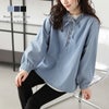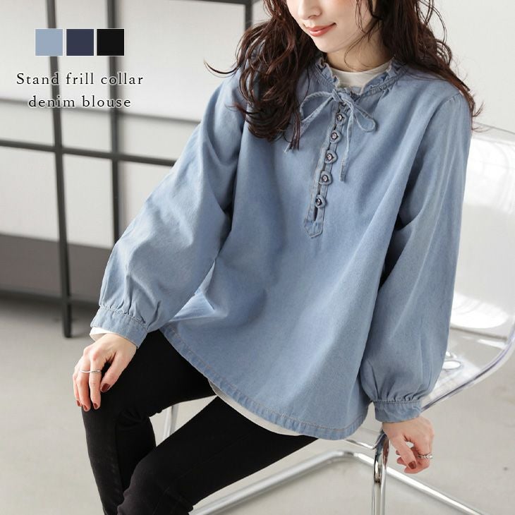 スタンドフリルカラー デニム ブラウス 体型カバー 【春夏半額SALE対象】 スタンドフリルカラー デニム ブラウス 長袖 体型カバー レイヤード オーバーサイズ レディース おすすめ おしゃれ フリーサイズ メール便 2025春夏新作【lstpss25-1019】【即納:1-5営業日】【送料無料】メ込2