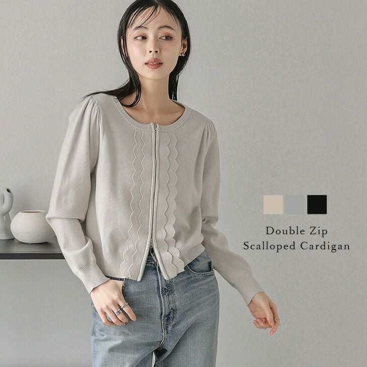 スカラップ ダブルジップ ニット カーディガン ZIP 【秋冬半額SALE対象】 スカラップ ダブルジップ ニット カーディガン ZIP スタイルアップ 大人可愛い レディース おすすめ おしゃれ フリーサイズ メール便 2025春夏新作【lstpss25-1034】【即納:1-5営業日】【送料無料】メ込2