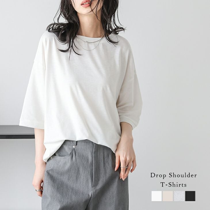 プルオーバー ドロップショルダー 5分袖 シンプル プルオーバー ドロップショルダー カットソー 5分袖 シンプル Tシャツ ラウンドネック レディース 大人カジュアル おすすめ おしゃれ フリーサイズ メール便 2025春夏新作【lstpss25-1076】【即納:1-5営業日】【送料無料】メ込2