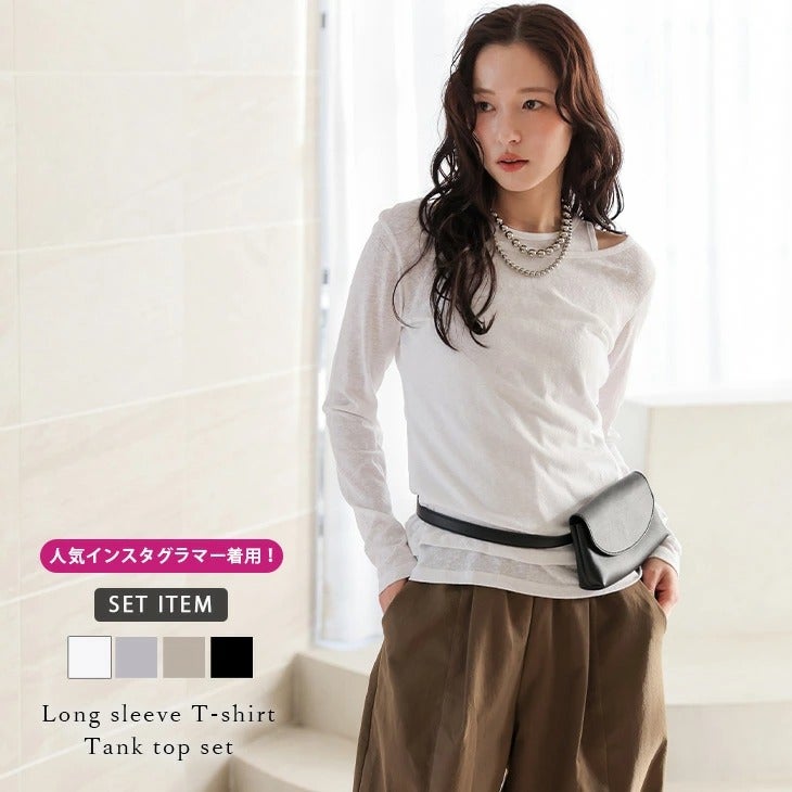 タンクトップ ロンT セット シアーニット アメスリ 【春夏半額SALE対象】 タンクトップ ロンT セット シアーニット アメスリ カットソー マルチWAY 着回し シンプル レイヤード トップス インナー レディース おすすめ おしゃれ フリーサイズ 2025春夏新作 【lstpss25-1148】【即納:1-5営業日】【送料無料】メ込2