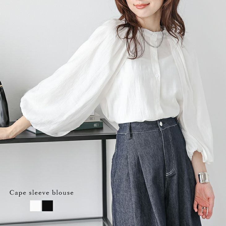 ケープライク シアーブラウス バンドカラー バックギャザー ケープライク シアーブラウス バンドカラー バックギャザー ジョーゼット 長袖 トップス レディース おすすめ おしゃれ フリーサイズ 2025春夏新作 【lstpss25-1157】【即納:1-5営業日】【送料無料】メ込2