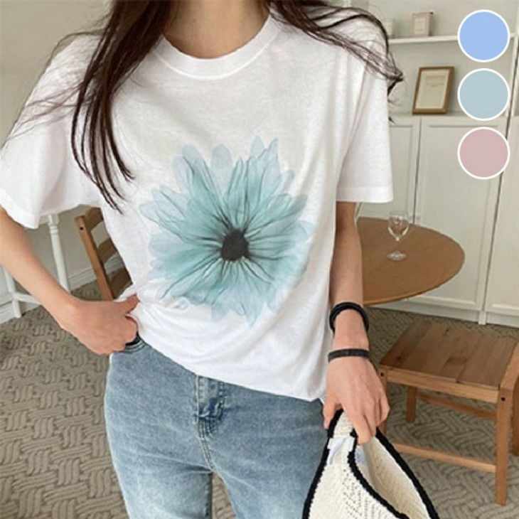 Tシャツ フラワープリント 半袖 シンプル カジュアル [AMELY by La-gemme]Tシャツ フラワープリント 半袖 シンプル カジュアル 花柄 可愛い ガーリー フェミニン おすすめ おしゃれ レディース トレンド 人気 プチプラ 韓国ファッション 2025春夏新作 【lstpss25-1336】【即納:1-5営業日】【送料無料】メ込2