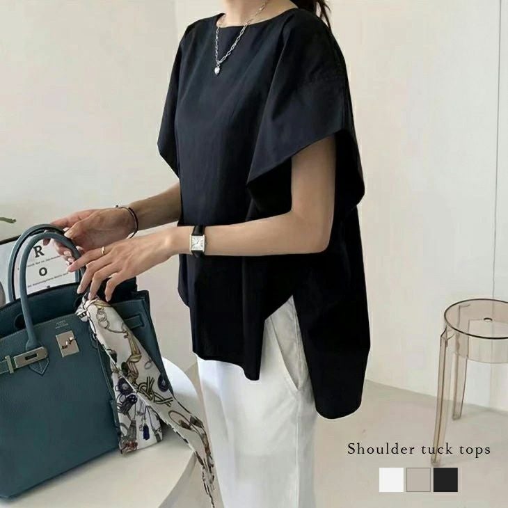 ショルダータック フレンチスリーブ トップス ボートネック ショルダータック フレンチスリーブ トップス ボートネック サイドスリット シャツ生地 レディース おすすめ おしゃれ 2025春夏新作 【lstpss25-1380】【即納:1-5営業日】【送料無料】メ込2