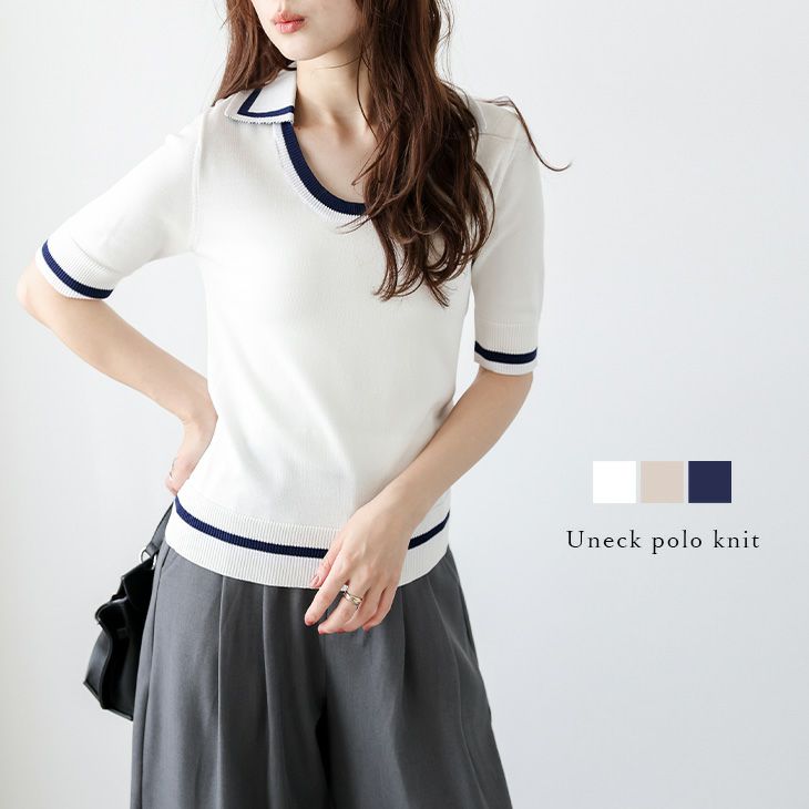 ポロニット サマーニット Uネック 配色デザイン 抜け感 ポロニット サマーニット Uネック 配色デザイン 抜け感 コンパクト カジュアル トップス レディース おすすめ おしゃれ 2025春夏新作 【lstpss25-1395】【即納:1-5営業日】【送料無料】メ込2