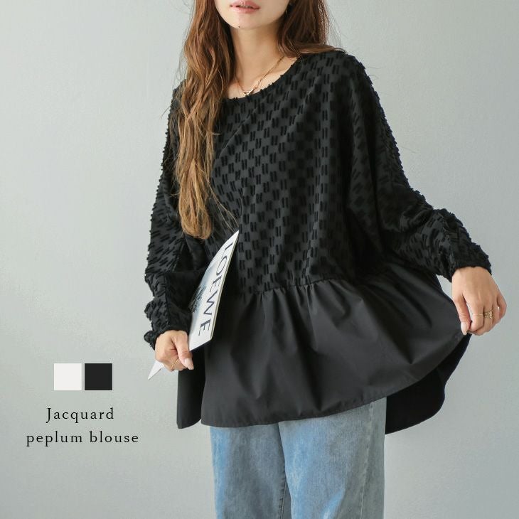 トップス ペプラム ブラウス ジャガード フリンジ トップス ペプラム ブラウス ジャガード フリンジ 異素材 華やか 体型カバー ゆったり 大人かわいい トレンド レディース おすすめ おしゃれ フリーサイズ メール便 2025春夏新作【lstpss25-712】【即納:1-5営業日】【送料無料】メ込2