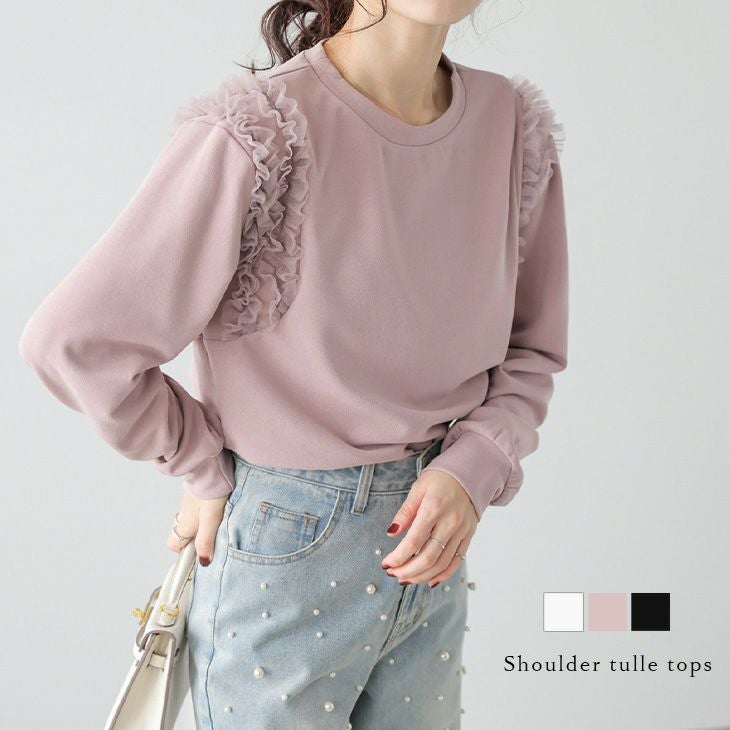 ショルダー チュール フリル トップス 長袖 ショルダー チュール フリル トップス 長袖 ラウンドヘム フェミニン レディース おすすめ おしゃれ フリーサイズ 2025春夏新作 【lstpss25-958】【即納:1-5営業日】【送料無料】ユ込2