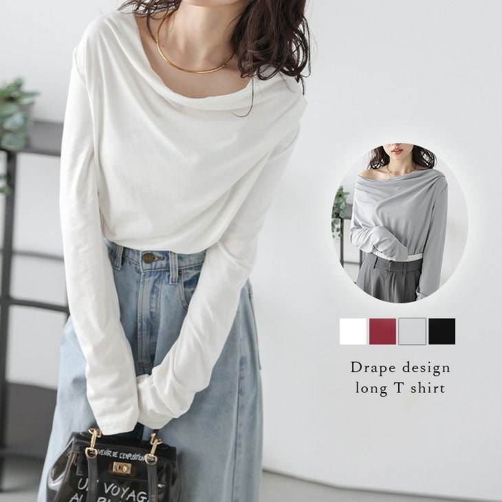トップス ロンT ドレープ ワンショル オフショル トップス ロンT ドレープ ワンショル オフショル クロップド丈 こなれ感 抜け感 細見せ シンプル 長袖 トップス レディース おすすめ おしゃれ フリーサイズ 2025春夏新作 【lstpss25-999】【即納:1-5営業日】【送料無料】メ込2