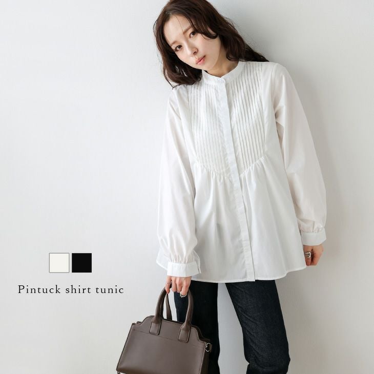 ピンタック シャツ キレイめ 長袖 比翼ボタン 【春夏半額SALE対象】 ピンタック シャツチュニック キレイめ 長袖 比翼ボタン バンドカラー 体型カバー ミドル丈 羽織り レディース おすすめ おしゃれ フリーサイズ メール便 2026春夏新作【lstpss26-1810】【即納:1-5営業日】【送料無料】メ込2