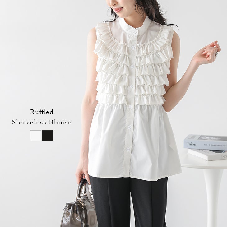 ブラウス フリル バンドカラー シャツブラウス フレアシルエット ノースリーブ トップス レディース おすすめ おしゃれ 2026春夏新作 【lstpss26-1992】【予約販売:4月16日入荷予定順次発送】【送料無料】メ込2