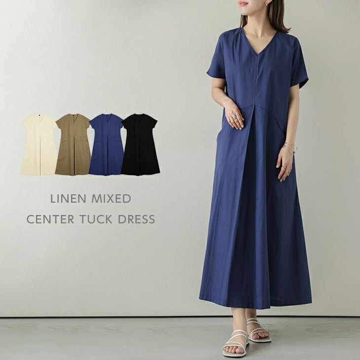 ロングワンピース リネン混 センタータック 半袖 フレア ロングワンピース リネン混 センタータック 半袖 フレア ゆったり レディース 大人 おすすめ ブラック フリーサイズ メール便 2025春夏新作 【lswp203-357】【即納:1-5営業日】【送料無料】ヤ込1
