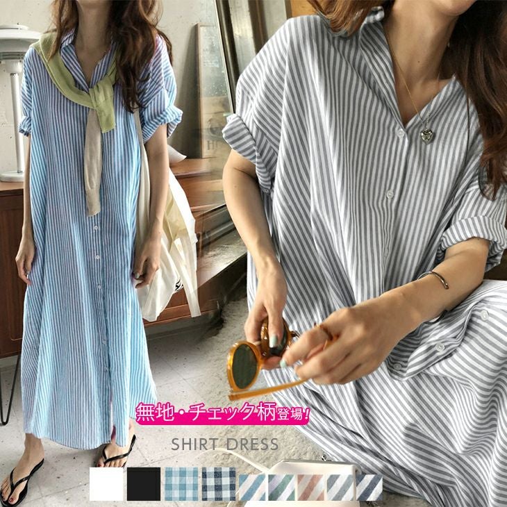 シャツワンピース ストライプ柄 半袖 レディース 大人 シャツワンピース ストライプ柄 半袖 レディース 大人 抜け感 おすすめ おしゃれ ブラック フリーサイズ メール便 2025春夏新作 【lswp203-360】【即納:1-5営業日】【送料無料】ユ込3