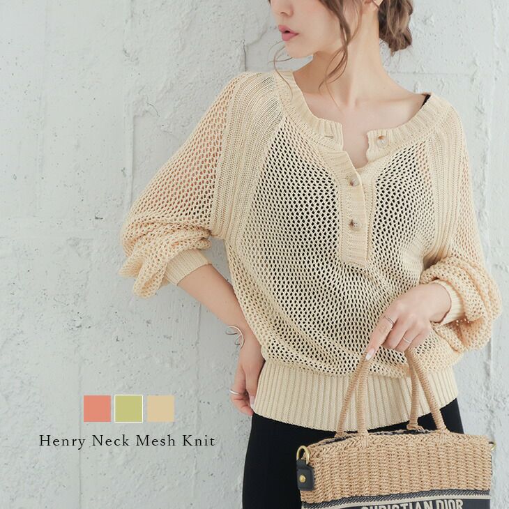 サマーニット ヘンリーネック メッシュ ボリューム スリーブ サマーニット ヘンリーネック メッシュ ボリューム スリーブ トップス レディース おすすめ おしゃれ ブラック フリーサイズ メール便 2025春夏新作 【lswp203-375】【即納:1-5営業日】【送料無料】ユ込3
