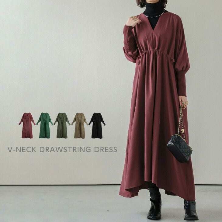 ワンピース ロング Vネック 長袖 大人可愛い ワンピース ロング Vネック 長袖 大人可愛い レディース おすすめ 小顔効果 おしゃれ レイヤード フリーサイズ メール便 2025秋新作 【lswp207-567】【即納:1-5営業日】【送料無料】ヤ込1