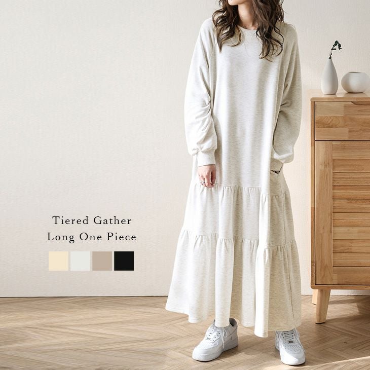 ロング ワンピース 長袖 クルーネック フレア ロング ワンピース 長袖 クルーネック フレア 抜け感 着心地 カジュアル フェミニン リラックス レディース おすすめ おしゃれ フリーサイズ 2025秋新作 【lswp210-51a】【即納:1-5営業日】【送料無料】宅込