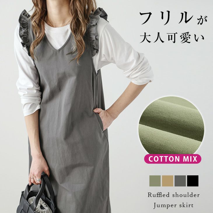 ジャンパースカート フリル Vネック Aライン ロング丈 ジャンパースカート フリル Vネック Aライン ロング丈 大人 上品 体型カバー ボトムス レイヤード レディース おすすめ おしゃれ ブラック フリーサイズ メール便 2025春夏新作 【lswp210-55a】【即納:1-5営業日】【送料無料】メ込2