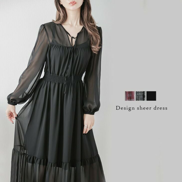 ほんのり透け感ワンピース デザインシアドレス ワンピース ほんのり透け感ワンピース デザインシアドレス ワンピース ドレス ロング 長袖 レディース おすすめ 薄い 軽やか おしゃれ ブラック 2025春夏新作【lswp210-580】【即納:1-5営業日】【送料無料】メ込2