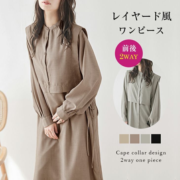2WAY ワンピース レイヤード風 ケープカラー ロング丈 2WAY ワンピース レイヤード風 ケープカラー ロング丈 長袖 レディース おすすめ おしゃれ カジュアル 大人 可愛い シンプル ブラック フリーサイズ 2025春夏新作【lswp210-72a】【即納:1-5営業日】【送料無料】メ込2